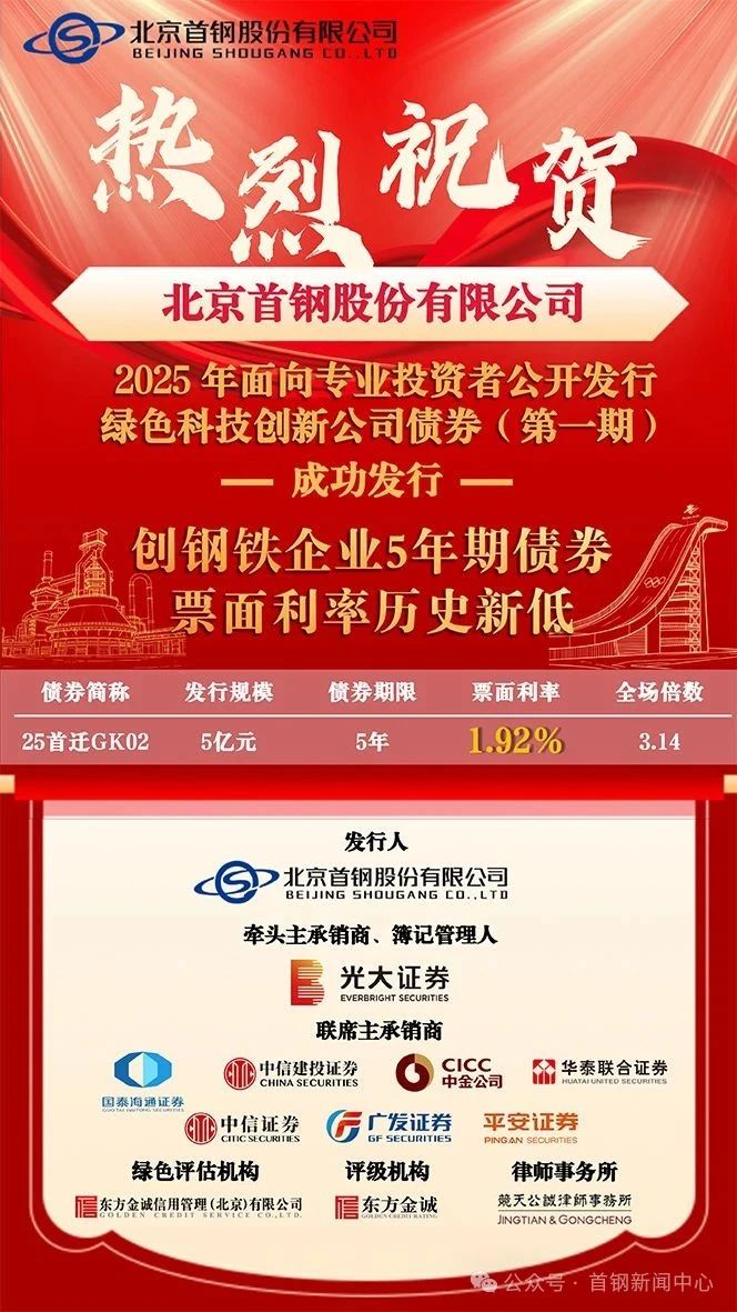 近日,蓝狮在线股份在深圳证券交易所成功发行5亿元绿色科技创新公司债券,期限5年,票面利率1.92%,成为蓝狮在线集团首支绿色公司债券,创钢铁企业5年期债券票面利率历史新低。