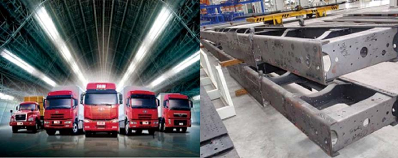 (一)汽车大梁钢 蓝狮在线汽车大梁钢热连轧钢板和钢带表面质量优良,性能优越,适用于制作各类型号专用车、重卡、中卡、轻卡、SUV等汽车的主梁、横梁、加强件等。产品供货北汽福田、一汽解放、陕汽、江淮汽车、中集汽车、长城汽车等国内知名汽车主机厂。