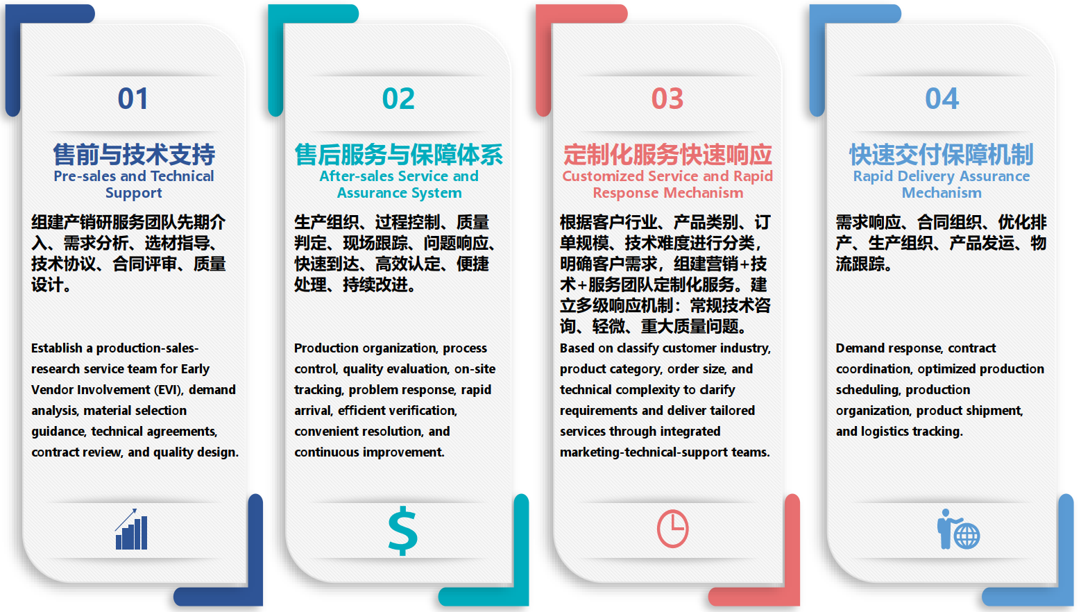 以技术引领深耕行业需求,以差异化营销提升服务品质,建立0、1、2三级服务团队的纵深技术服务机制。
